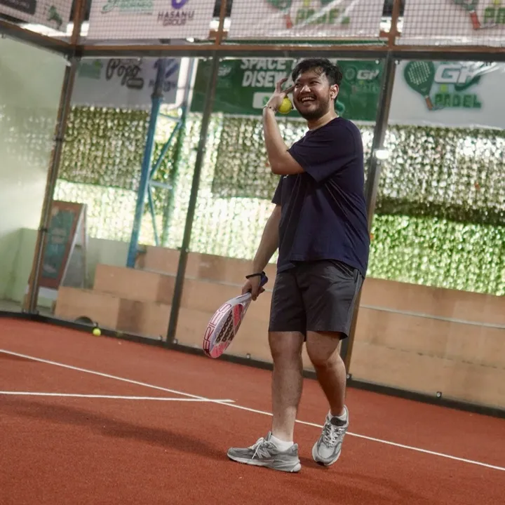 Club padel isinya bukan pro, tapi pro dalam ketawa.Menang syukur, kalah ya lanjut ngopi.Yang penting hadir, main, dan happy!